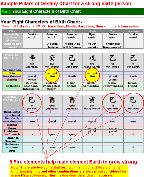 2. These elements are looked at in relation to the day of birth pillar. For example, if the day pillar has earth element.